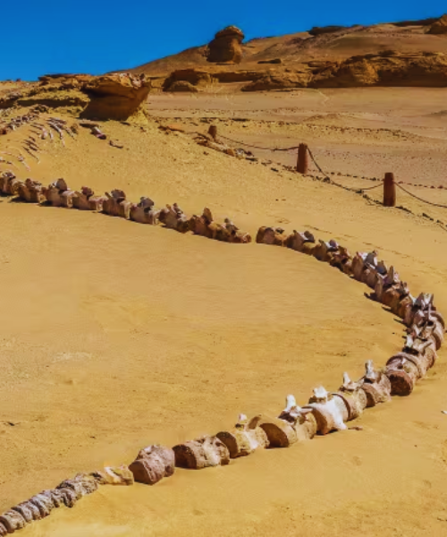 We start by exploring the unique Melons Valley, followed by a visit to the world-famous Wadi El Hitan (Valley of the Whales) — a UNESCO World Heritage Site that showcases fossilized whale skeletons and a fascinating fossil & climate change museum.